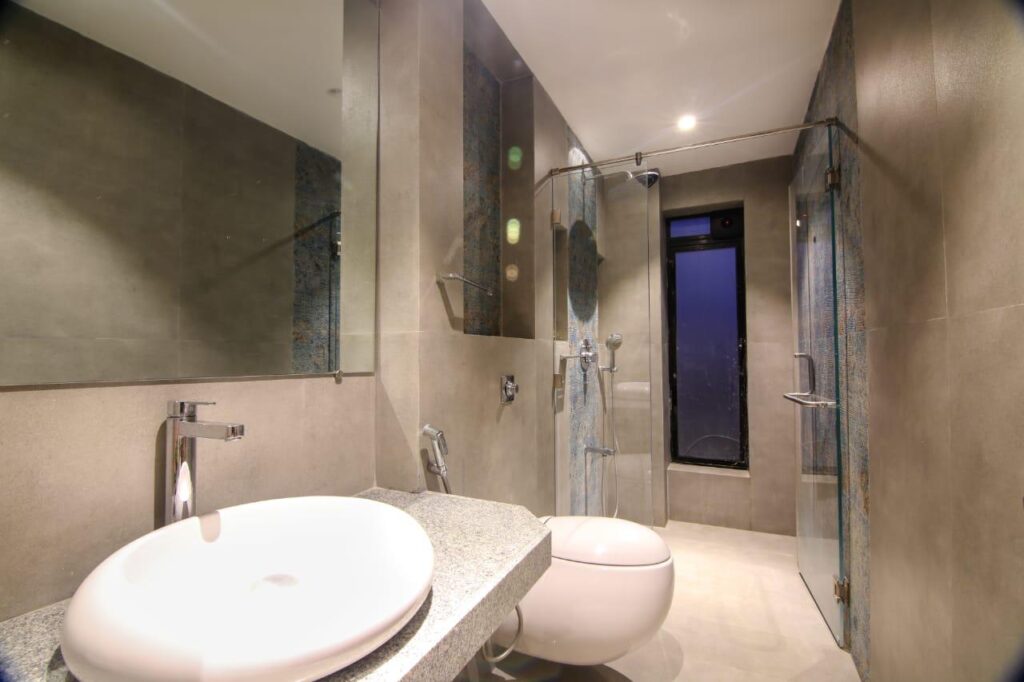 3.⁠ ⁠5 air con living rooms, that includes 1 kids bedroom. There’s one washroom that’s shared between two bedrooms.
