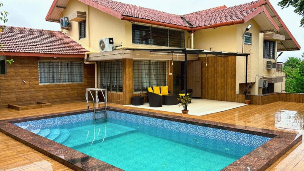 A stunning 4 BHK private villa with a sparkling swimming pool and beautifully landscaped lawn, offering the perfect mix of luxury, comfort, and space for relaxation and unforgettable gatherings.