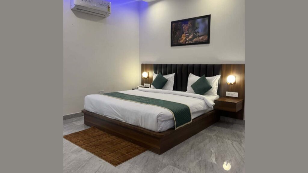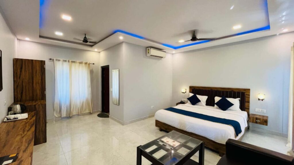 Super Deluxe Room (320 sq. ft.) – A spacious haven featuring a king-sized bed, plush lounge, double wardrobes, air conditioning, a flat-screen TV, and a fully equipped bathroom.