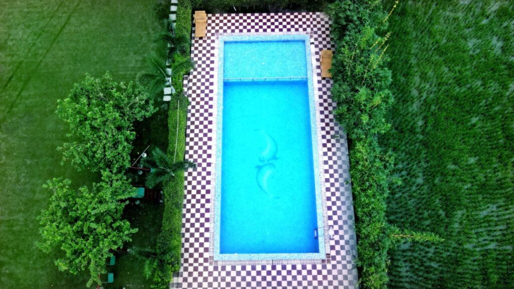 Swimming Pool – A serene oasis surrounded by lush greenery, perfect for relaxation.